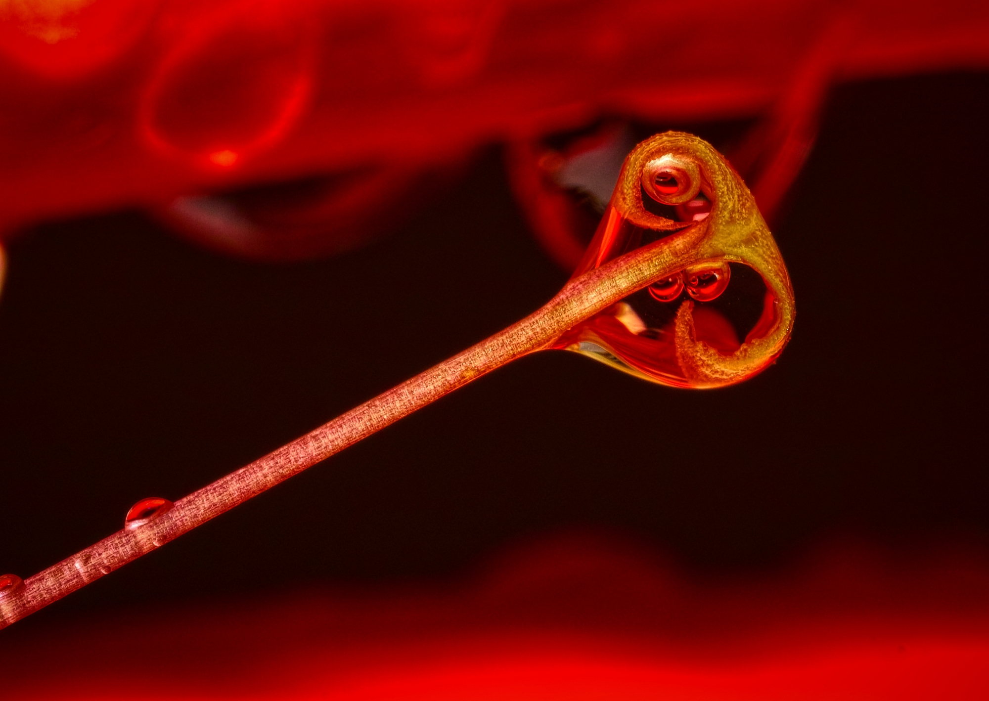 a drop of water in a flower