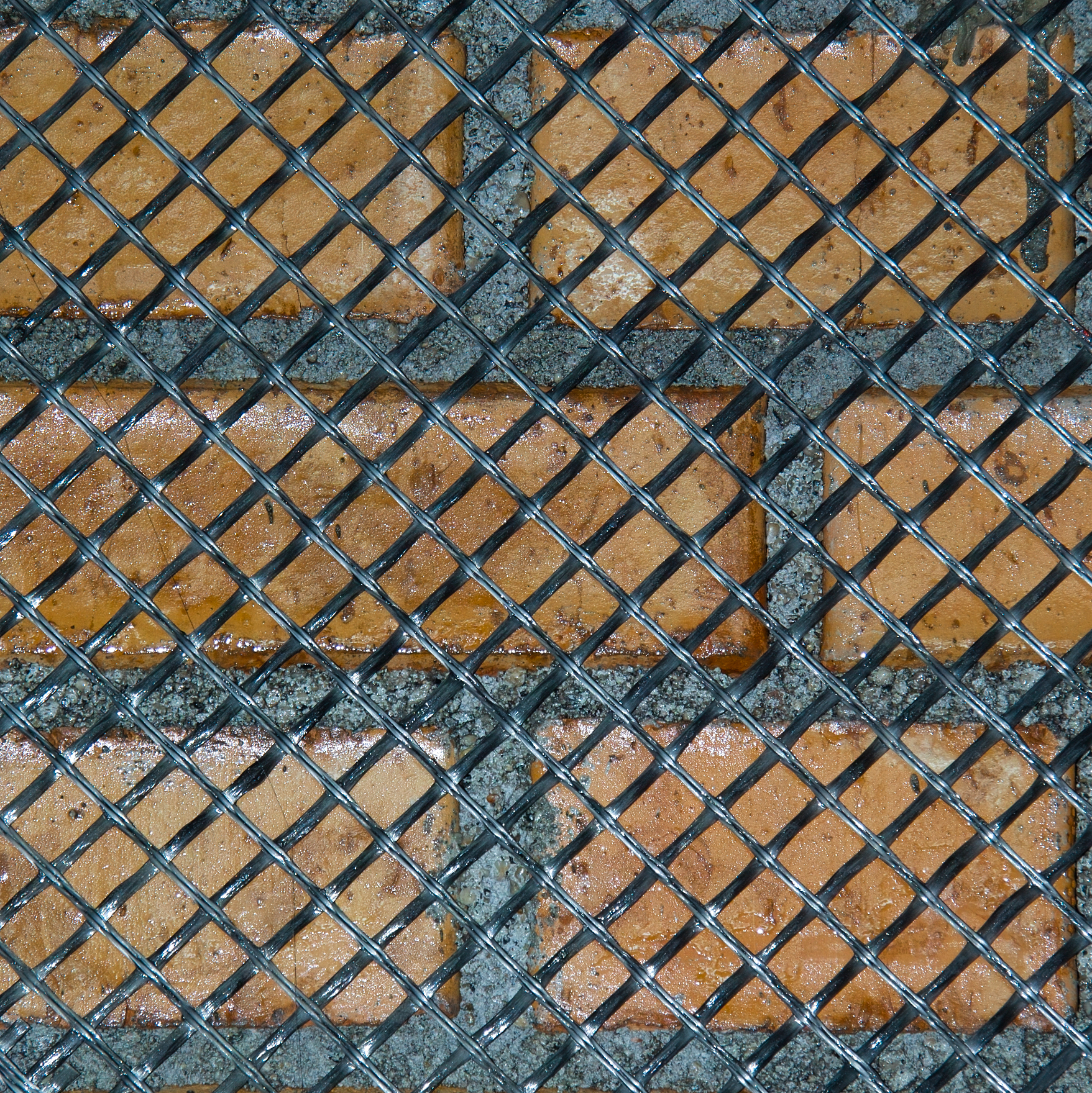 mesh reinforcing the brick wall