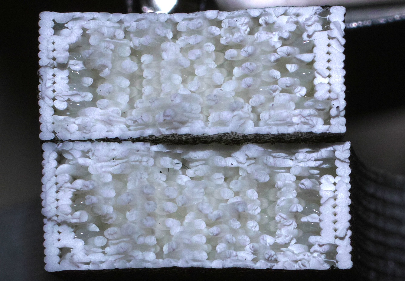 rare - cross-section of a sample from a 3d printer